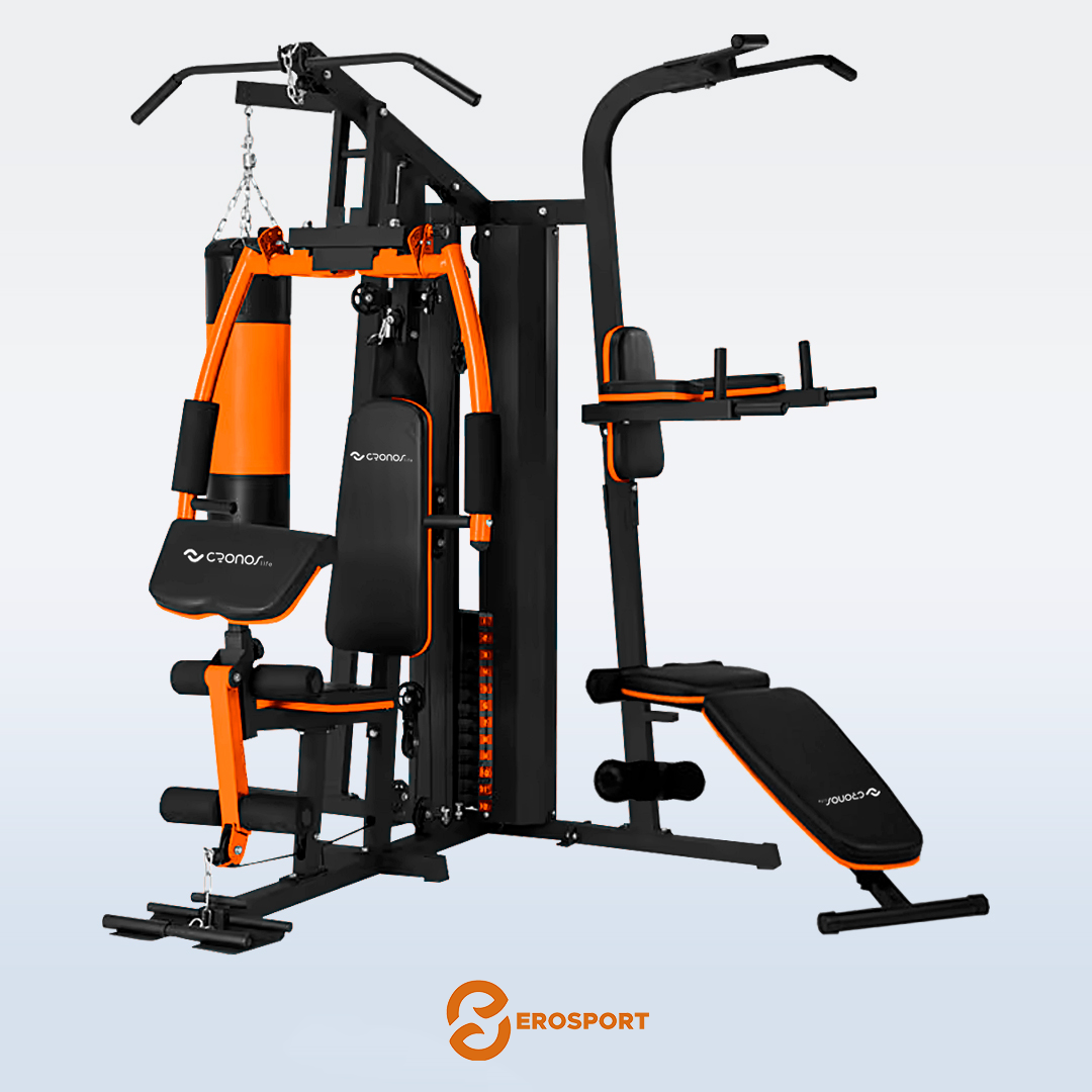 Ejercita todo el cuerpo: Brazos, espalda, hombros, pecho, piernas. Trabajo de Torso, Pectorales, Dorsales, Brazos, Hombros, Bíceps, Tríceps, Piernas y Cuádriceps Sistema de poleas integrado.